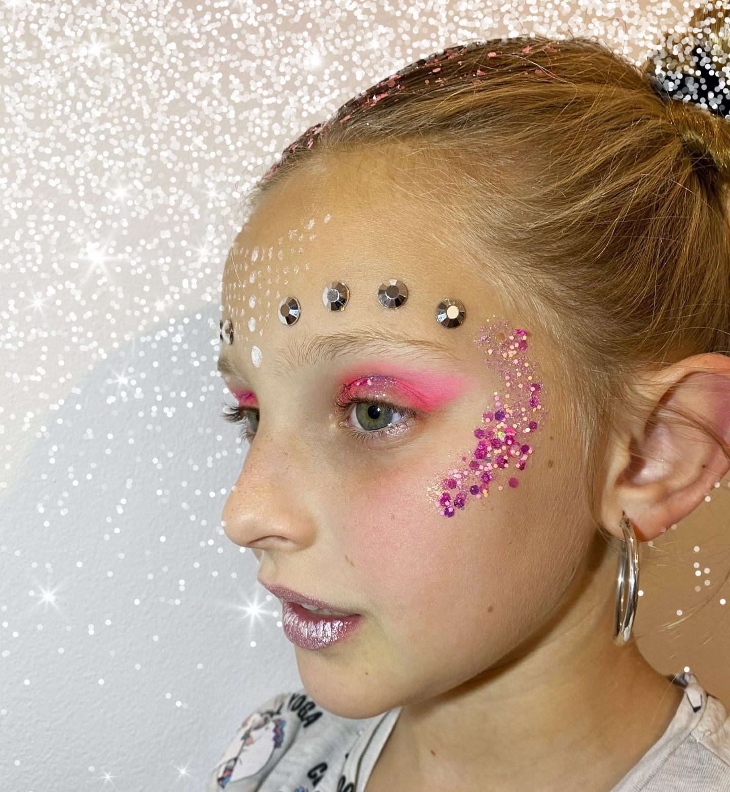 Una maquilladora profesional se desplaza hasta tu fiesta, decorará la mesa de glitter y se encargará de animar a los más pequeños con un sin fin de modelos de maquillaje y muchos más productos…como pegatinas de diamantes, tatuajes adhesivos, purpurina y mucho brillo!